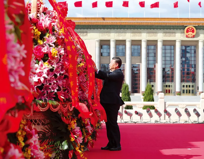 2018年9月30日上午,黨和國(guó)家領(lǐng)導(dǎo)人習(xí)近平、李克強(qiáng)、栗戰(zhàn)書、汪洋、王滬寧、趙樂(lè)際、韓正、王岐山等來(lái)到北京天安門廣場(chǎng),