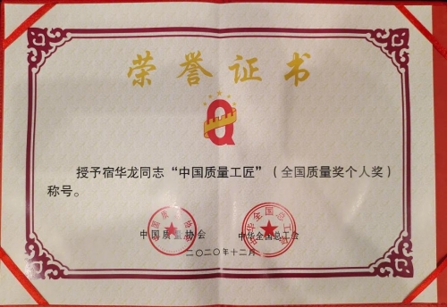 兵器工業(yè)集團宿華龍榮獲第十九屆全國質(zhì)量獎“中國質(zhì)量工匠”稱號