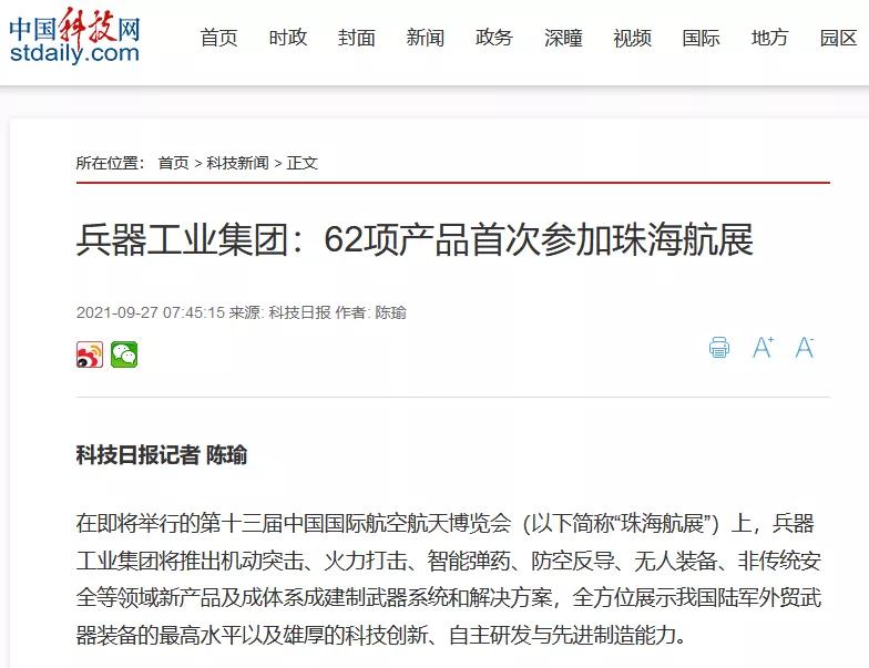 圖片中國(guó):強(qiáng)軍聚星 兵器工業(yè)集團(tuán)產(chǎn)品裝備閃耀中國(guó)航展2021-09-30