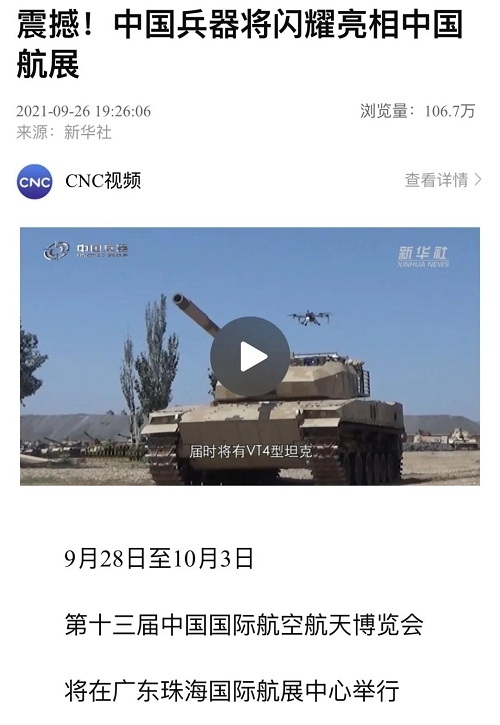 央廣網(wǎng):兵器工業(yè)集團(tuán)將展出150多項(xiàng)展品 超四成首展|中國(guó)航展萬(wàn)里行2021-09-30