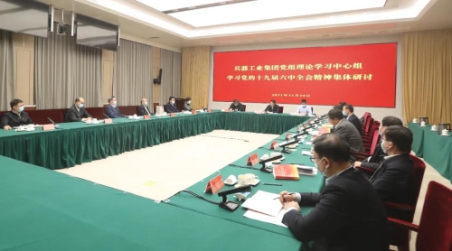11月30日,中國(guó)兵器工業(yè)集團(tuán)有限公司黨組書(shū)記、董事長(zhǎng)焦開(kāi)河主持黨組理論學(xué)習(xí)中心組專題學(xué)習(xí)會(huì)議,深入學(xué)習(xí)貫徹黨的十九屆六中全會(huì)精神,深刻領(lǐng)會(huì)習(xí)近平總書(shū)記在六中全會(huì)上的重要講話精神和《中共中央關(guān)于黨的百年奮斗重大成就和歷史經(jīng)驗(yàn)的決議》,研討貫徹落實(shí)的思路措施。中央企業(yè)黨史學(xué)習(xí)教育第一指導(dǎo)組副組長(zhǎng)杜國(guó)功列席并作指導(dǎo)講話,集團(tuán)公司總經(jīng)理、黨組副書(shū)記、董事劉大山,黨組副書(shū)記、董事周艦,黨組成員、總會(huì)計(jì)師張華,紀(jì)檢監(jiān)察組組長(zhǎng)、黨組成員陳學(xué)釧,黨組成員、副總經(jīng)理李春建、植玉林、閆哲參加學(xué)習(xí)。