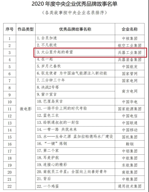 兵器工業(yè)集團品牌建設(shè)案例入選2020年度100個國有企業(yè)品牌建設(shè)典型案例和100個優(yōu)秀品牌故事 |