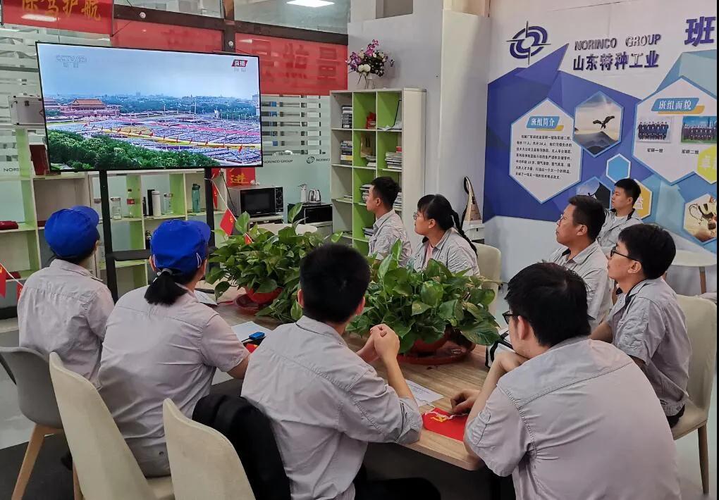 集團公司總經理、黨組副書記劉大山,黨組副書記周艦,黨組成員、總會計師張華,紀檢監(jiān)察組組長、黨組成員陳學釧,黨組成員、副總經理鄒文超,黨組成員、副總經理植玉林帶領總部全體職工觀看慶祝大會,各單位組織機關干部、科研人員、車間工人等通過集中收看、電視、電腦、手機網絡等方式觀看慶祝大會。