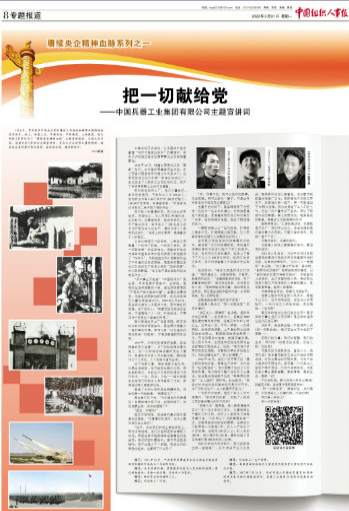 1月6日,貫徹落實中央企業(yè)黨的建設(shè)工作座談會精神專題推進(jìn)會在京召開。會上,中國兵器工業(yè)集團(tuán)有限公司等5家單位作了“賡續(xù)央企精神血脈”主題宣講報告。3月21日,《中國組織人事報》刊發(fā)賡續(xù)央企精神血脈系列之一——《把一切獻(xiàn)給黨——中國兵器工業(yè)集團(tuán)有限公司主題宣講詞》。