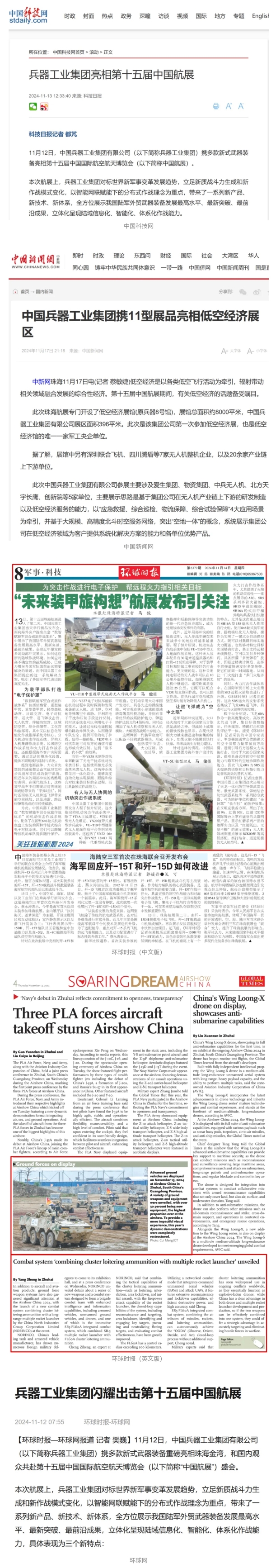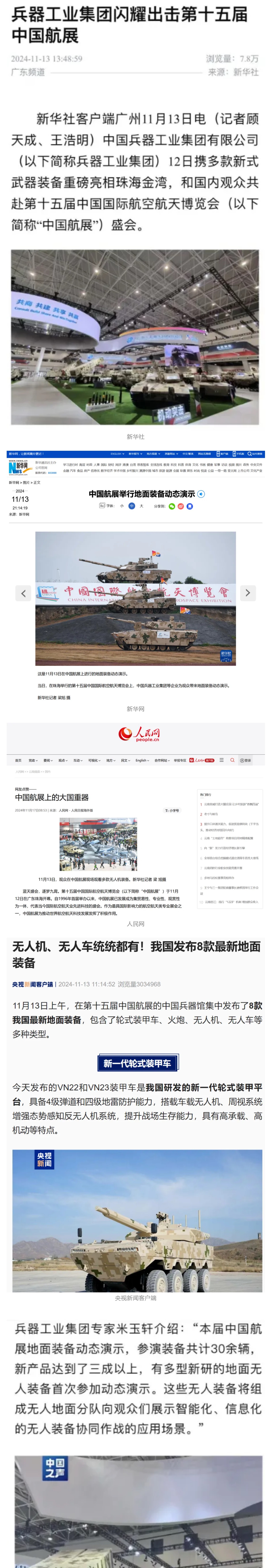 新華社、央視新聞、中央廣播電視總臺中國之聲、央視軍事、中國軍視網(wǎng)、廣東廣播電視臺等媒體以及國家國防科工局、國資小新等到兵器工業(yè)集團(tuán)地面動態(tài)演示區(qū)、中國兵器館進(jìn)行了直播。