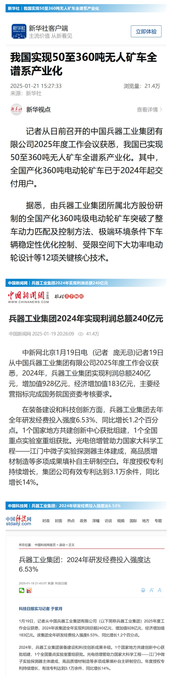 1月19日至20日,中國兵器工業(yè)集團有限公司2025年度工作會議在京召開,會議總結(jié)2024年工作,分析形勢任務(wù),明確工作思路,部署2025年工作。 集團公司2024年取得的成績及下一步重點工作受到社會媒體廣泛關(guān)注。新華社、中國新聞網(wǎng)、中國科技網(wǎng)、光明日報客戶端、經(jīng)濟日報客戶端、中國日報網(wǎng)、國務(wù)院國資委網(wǎng)站、學(xué)習強國中央企業(yè)學(xué)習平臺、新浪網(wǎng)、網(wǎng)易網(wǎng)、搜狐網(wǎng)、騰訊網(wǎng)、鳳凰網(wǎng)等中央主流媒體、國家部委網(wǎng)站及知名網(wǎng)絡(luò)媒體對集團公司2025年度工作會議進行了報道,重點關(guān)注集團公司經(jīng)營業(yè)績、科技創(chuàng)新、產(chǎn)業(yè)結(jié)構(gòu)布局優(yōu)化等情況。其中,新華社以《我國實現(xiàn)50至360噸無人礦車全譜系產(chǎn)業(yè)化》為題,重點報道了集團公司在推動智能制造水平提升方面取得的成效;中國新聞網(wǎng)、光明日報客戶端、經(jīng)濟日報客戶端、中國日報網(wǎng)等就集團公司2024年度經(jīng)營業(yè)績及各項工作取得的成果進行報道;中國科技網(wǎng)著重報道了集團公司在科技創(chuàng)新和優(yōu)化產(chǎn)業(yè)結(jié)構(gòu)布局方面的最新進展。集團公司門戶網(wǎng)站、微信公眾號、微博等新媒體平臺以及《中國兵工報》也對集團公司工作會議進行了及時報道,各成員單位紛紛對相關(guān)內(nèi)容進行轉(zhuǎn)載,引發(fā)全系統(tǒng)關(guān)注。 集團公司職工及廣大網(wǎng)友熱議工作會 “2025年工作會為我們指明了發(fā)展方向、明確了奮斗目標,面對全新的機遇和挑戰(zhàn),作為兵工人深感責任重大?!?/p> “科技是第一生產(chǎn)力,一定要以科技創(chuàng)新引領(lǐng)新質(zhì)生產(chǎn)力發(fā)展,為高質(zhì)量發(fā)展提供支撐?!?/p> “把各項工作做深、做實、做細,努力為集團公司高質(zhì)量發(fā)展添磚加瓦?!?/p> “2024年中國兵器展示了大國重器,祝新的一年中再創(chuàng)輝煌!” |